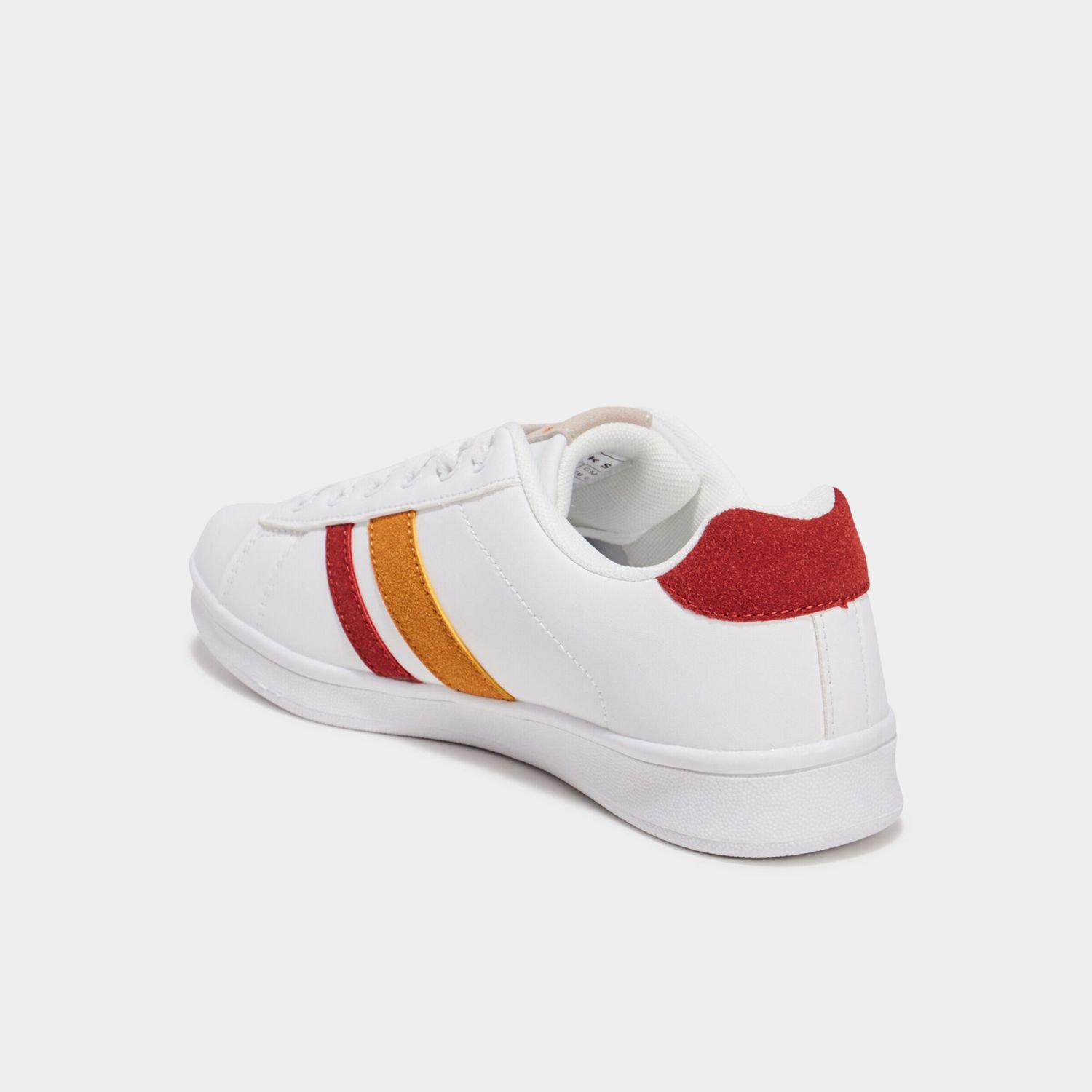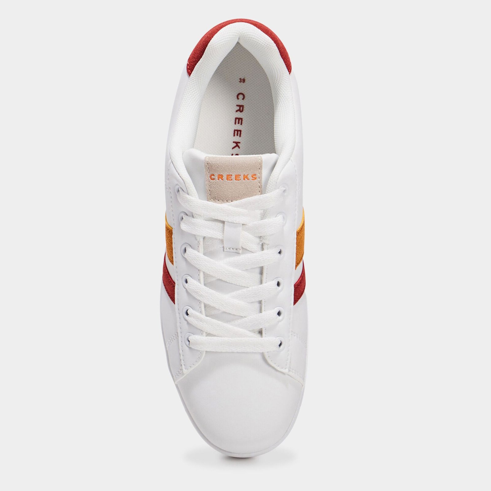 Ces tennis basses de la marque Creeks allient simplicité et élégance. De couleur blanche, elles se distinguent par 2 bandes sur le côté, apportant une touche de féminité et de fraîcheur à votre tenue. Le renfort arrière au talon présente une finition pailletée pour une note de brillance discrète.