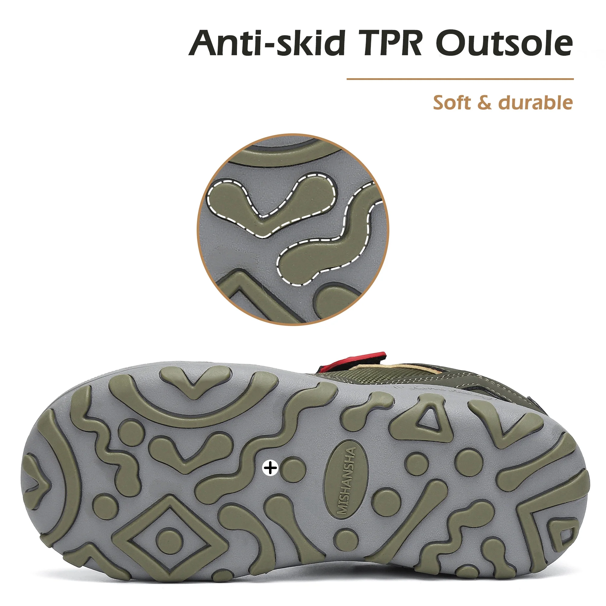 - Semelle anti-dérapante en caoutchouc : Douce et durable