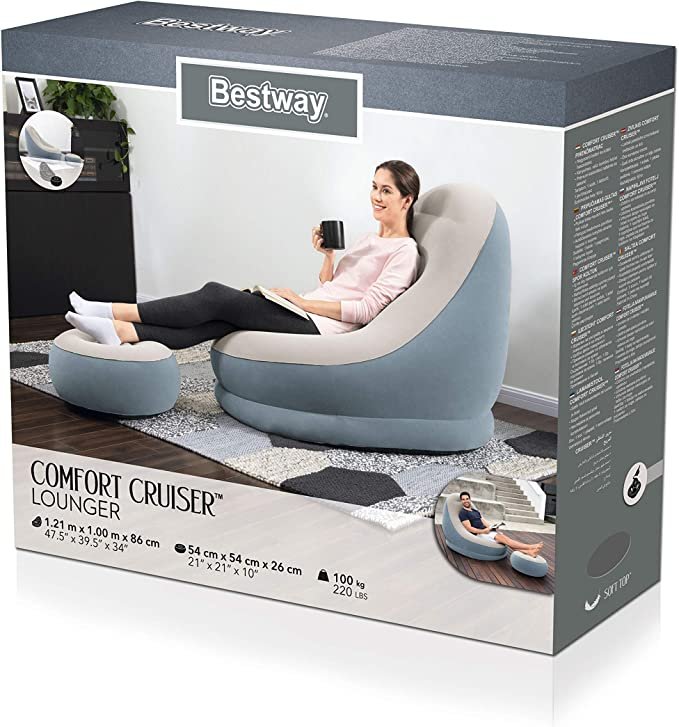 Chaise et repose-pieds gonflables confortables Bestway, vous pouvez le mettre dans la salle de réception ou dans votre chambre pour vous asseoir tout en sirotant un café ou en lisant votre livre, ou même sur la terrasse pour profiter d’une atmosphère agréable, Fabriqué en matériaux durables pour une longue durée de vie Facile à gonfler et à dégonfler, se présente sous une forme compacte pour une portabilité facile.