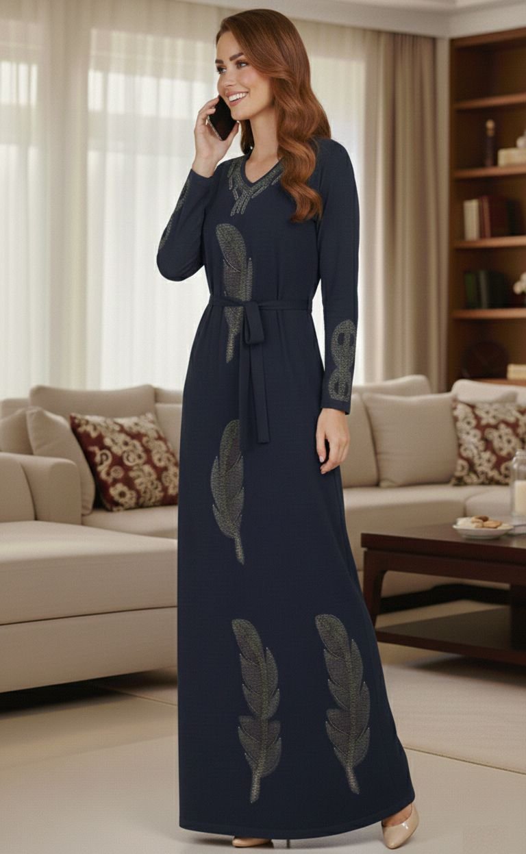 Djebba Moderne “Plume d’Or” Élégance et Confort – Bleue