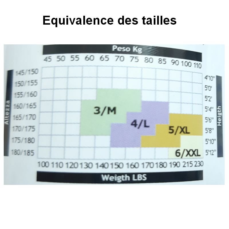 Tailles : 3/M, 4/L, 5/XL, 6/XXL.
