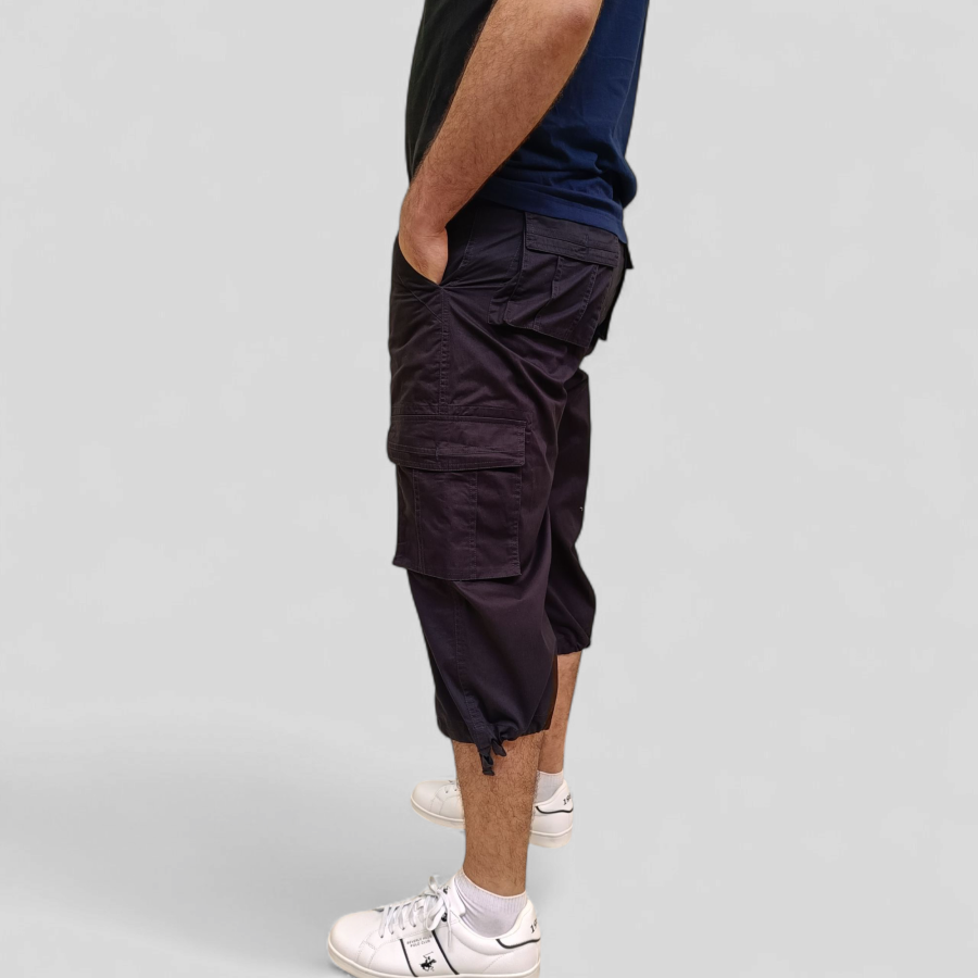 Pantacourt Cargo En Toile 3/4 Multi-Poches – CrossBy MA-04 – Bleu Nuit