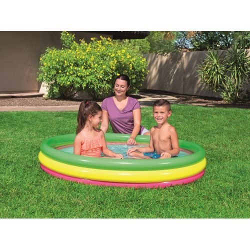 Le bassin de 152 cm x 30 cm se compose de trois anneaux colorés et le réservoir peut contenir jusqu’à 211 litres d’eau. Données techniques: – dimensions de la piscine 152 cm x 30 cm – soupapes de sécurité – matériau vinyle durable testé – capacité eau 211 L – plancher pompé – patch de réparation La piscine sera super à l’intérieur de l’appartement, sur le tapis, ainsi que pendant l’été en éclaboussant à l’extérieur sur l’herbe, le sable … etc. Grâce à l’emballage coloré, ce sera également un excellent cadeau