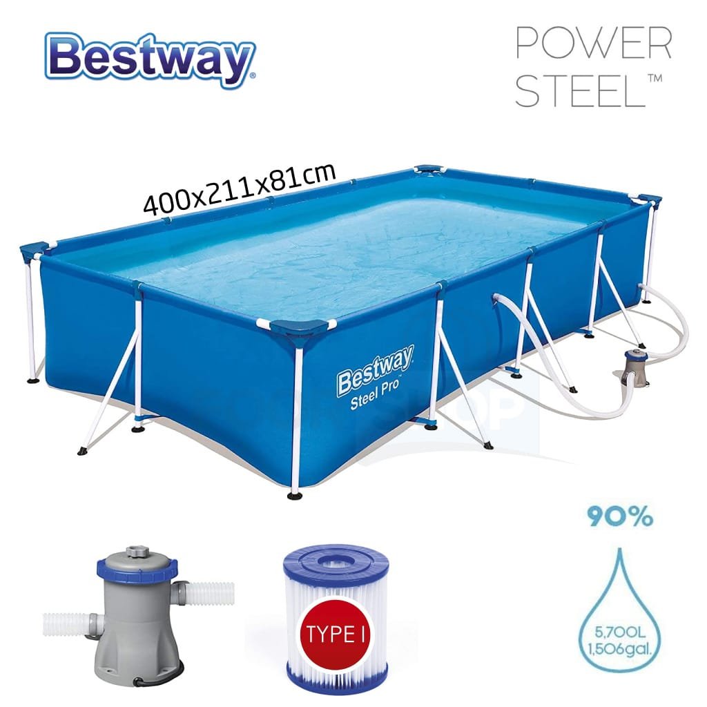 Piscine Rectangulaire -Bestway 56424 – Steel Pro – filter et pompe – 400 x 211 x 81 cm / Bleu