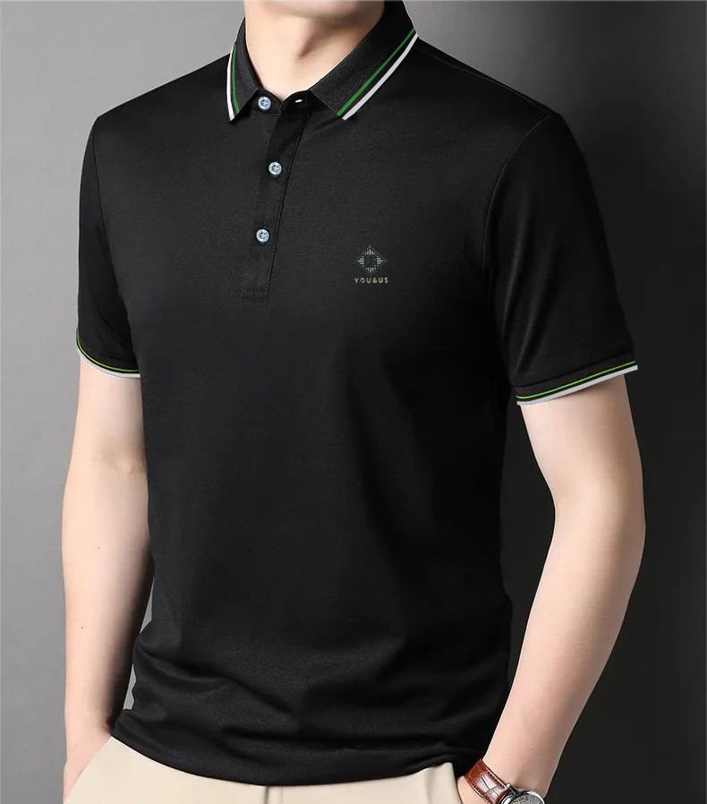 Polo Décontracté à Manches Courtes – Coupe Slim – Black Avec Trait