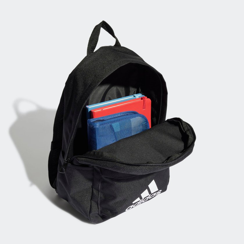 Sac à dos en tissu, poche principale avec fermeture éclair à double sens, imprimé de la marque et poche zippée sur le devant, poches latérales, poche intérieure supplémentaire, dos légèrement rembourré, bretelles rembourrées réglables avec sangle auto-agrippante pour les maintenir ensemble, poignée supérieure.