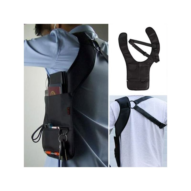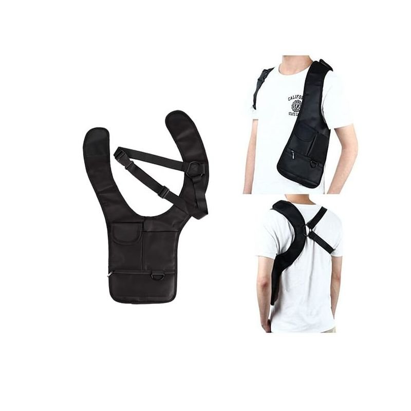 Cette pochette à bandoulière caché sous les bras est parfaite pour la porter avec un costume ou une veste ainsi que des tenus de sport.