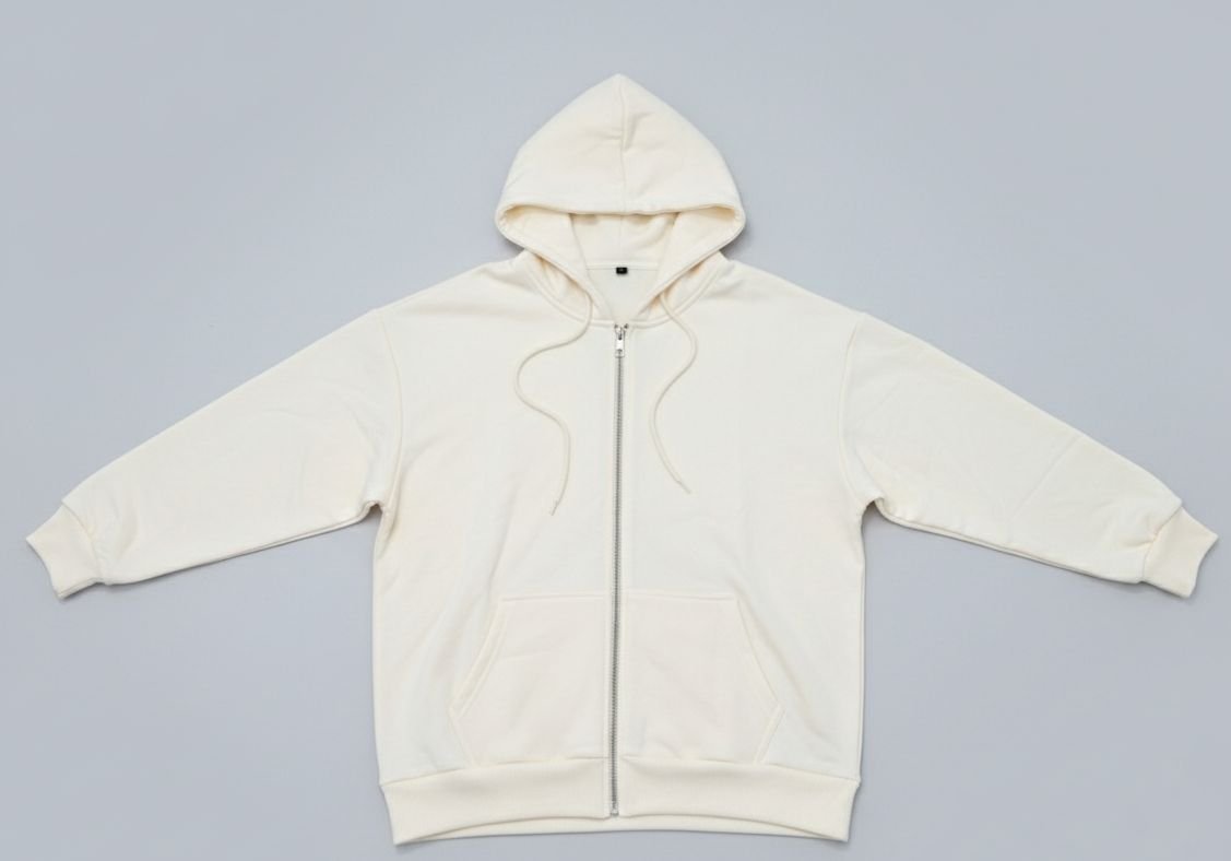Sweat OverSize Zippé à Capuche – Beige