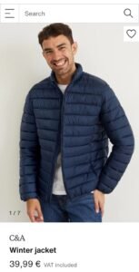 Veste C&A matelassée Classique ultralégère rembourrée, dotée de poches zippées latérales et de bordures passepoilées.